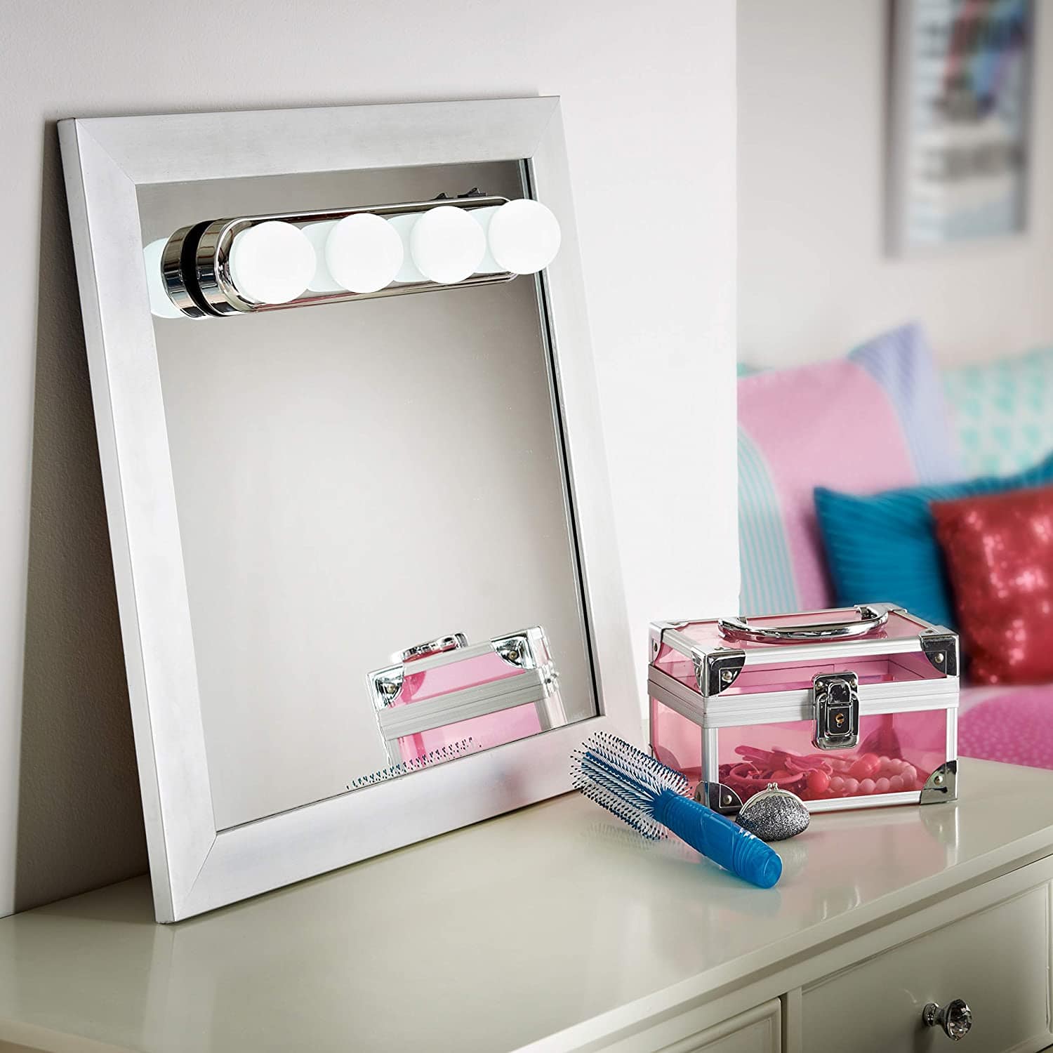 Lumaglam™, cordless mirror light that can instantly convert any mirror into a bright and even professional studio mirror.