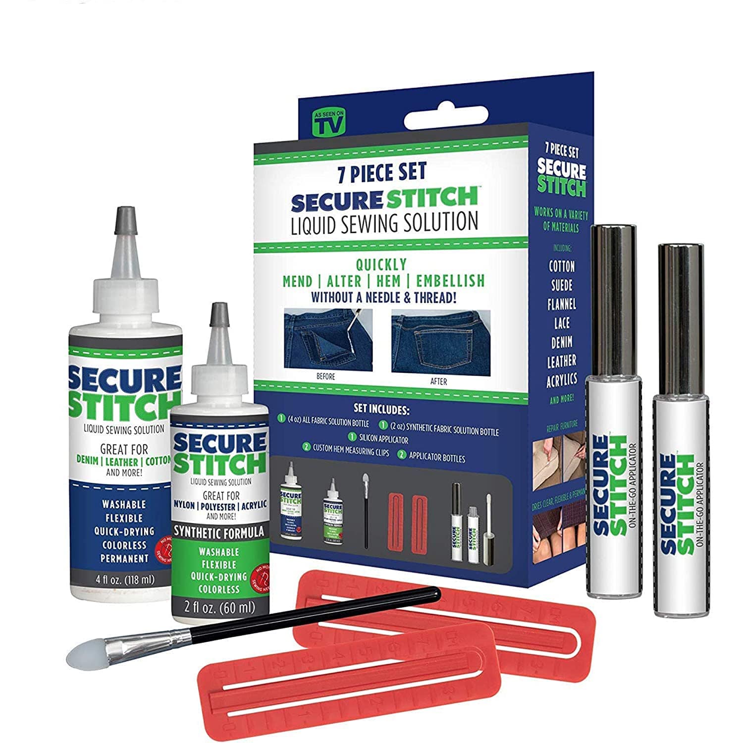 It is a liquid solution that sews together any fabric as perfectly as a needle and thread would only without all that hassle.